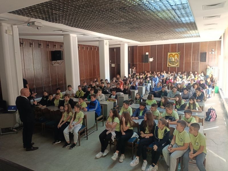 Първата беседа на водещия експерт с ученици протече в зала „Май“. На нея бе обърнато сериозно внимание на превенцията на кибертормоза и рисковете в интернет. Учениците имаха възможност да дискутират с Колев актуални в сферата теми, както и да се запознаят с конкретни примери за рисковете в интернет пространството.