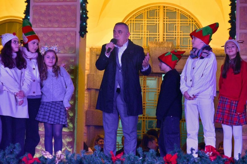 Преди светлините на коледното дърво пред Общината да озарят площада, Стефан Радев се обърна към всички и им пожела здраве и сбъдване на мечтите.