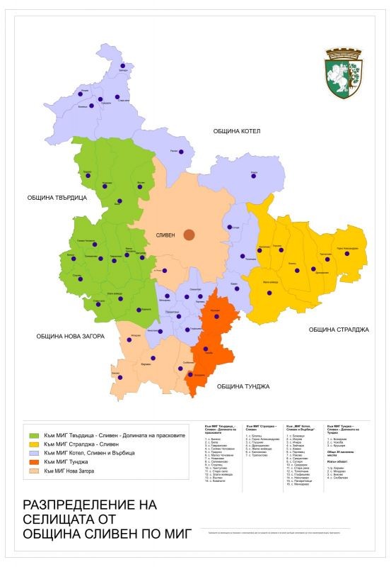 Няколко Местни инициативни групи /МИГ/, в които Община Сливен участва като партньор, са сред одобрените за европейско финансиране. Това става ясно от публикувания в ИСУН списък с проектните предложения, избрани в рамките на стратегията за местно развитие. В него попадат МИГ Стралджа - Сливен 2023, МИГ Тунджа - Сливен – Долината на Тунджа, МИГ Котел, Сливен и Върбица, МИГ Нова Загора – Сливен и МИГ Твърдица - Сливен - Долината на прасковите. За първи път всички села от община Сливен, която е най-голямата по територия община в България, ще имат възможност за финансиране на проекти от Програмата за развитие на селските райони. То се осъществява по линията на подхода ЛИДЕР, чрез изпълнение на Стратегия за Водено от общностите местно развитие, което се прилага от създадени Местни инициативни групи (МИГ).