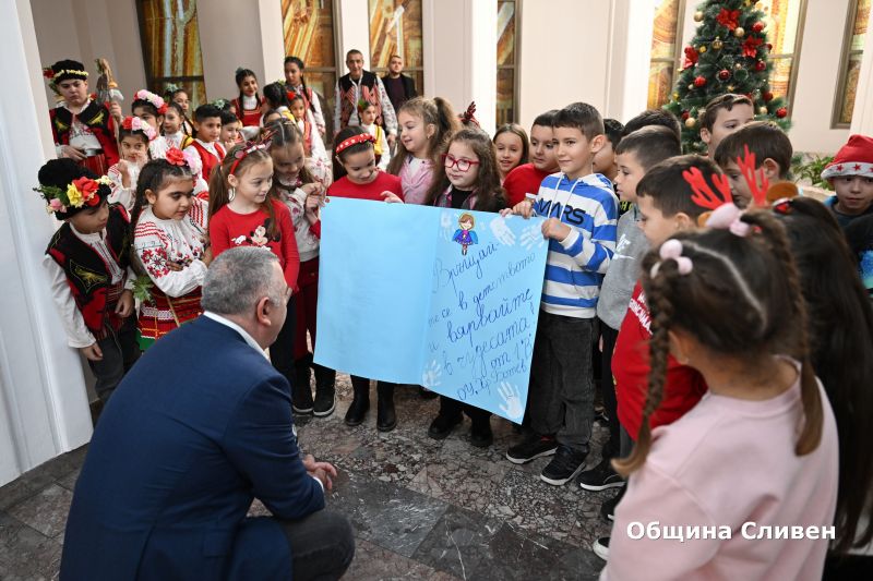 Коледа вече чука на вратата. А с наближаването на Рождество Христово, настроението става все по-голямо и празнично. За него допринесоха ученици от ОУ „Юрий Гагарин“, ОУ „Елисавета Багряна“ и ОУ „Христо Ботев“, които поздравиха кмета Стефан Радев и служителите на Община Сливен с коледни песни и танци. Децата и техните преподаватели се бяха подготвили с много ентусиазъм и старание, с които заразиха всички присъстващи. Имаше изненади и много усмивки.