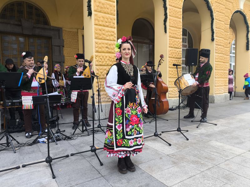Сливенският ансамбъл за народни песни и танци поздрави жителите и гостите на града. С празничен концерт по повод Рождество Христово, организиран от Община Сливен, изпълнителите зарадваха събралата се публика на площад „Цар Освободител“.