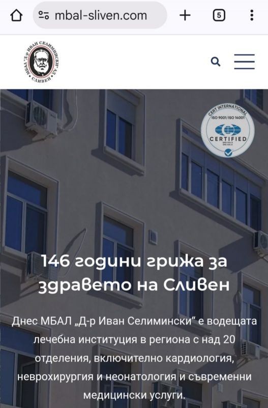 МБАЛ „Д-Р ИВАН СЕЛИМИНСКИ-СЛИВЕН“ ИМА НОВ САЙТ, С МОДЕРНА ВИЗИЯ