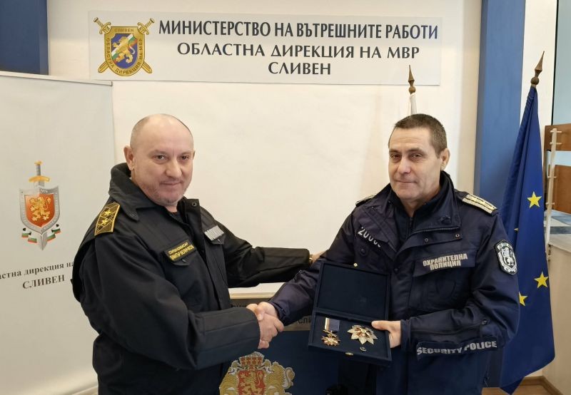 Днес в тържествена обстановка и в присъствието на служители на областната дирекция бяха връчени медал за доблест и заслуги от името на министъра на вътрешните работи, индивидуални парични награди от името на главния секретар на МВР, индивидуални и колективни награди от директора на ОДМВР-Сливен.