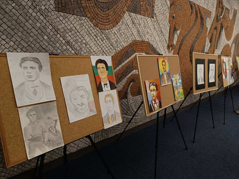 Във фоайето на зала "Сливен" беше подредена изложба с рисунки за Левски на сливенски деца.